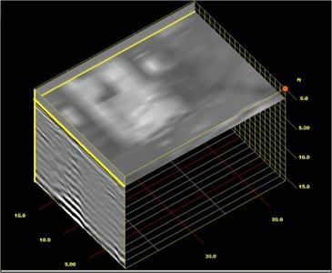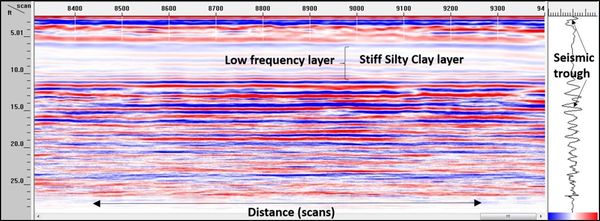 GPR slice of road tarmac and pavement infrastructure to identify intrusion features
