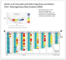 Vp/Vs vs AI cross plots, and Log Facies Classification correlation panel derived from Machine Learning K-Means algorithms
