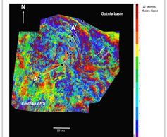 Machine Learning Unsupervised seismic facies map highlights depositional facies at carbonate shelf margin. Salt basin is situated to the north east